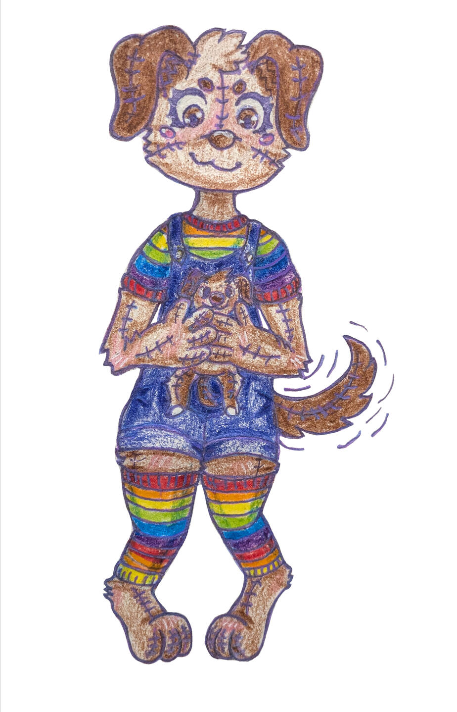 Biscuit is a living plush anthro dog who has a pet living plush dog of the same name that it acquired from a experimental cloneing project using its own DNA.