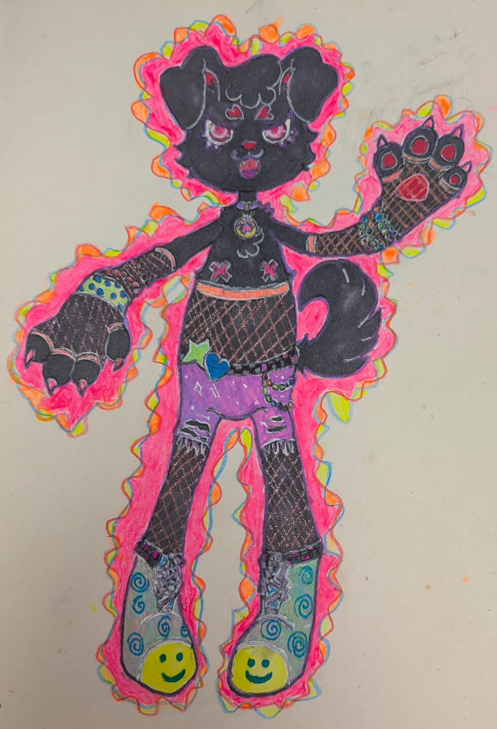 -Really likes neon colors, paints his claws neon pink and is almost always wearing fishnets